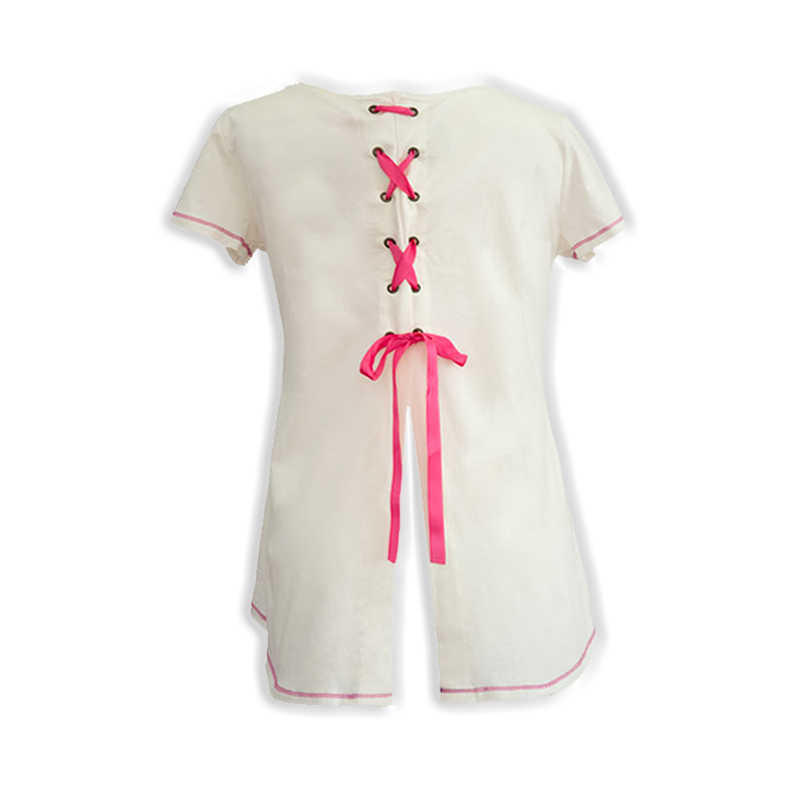 Este último boceto consta de una camiseta de manga corta con un bonito detalle trasero de un lazo rosa de raso.